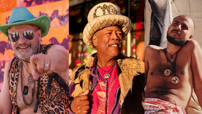 Cover image collage by Martin Rodriguez: 1. David Miles, the Godfather of Skate, at Black Rock Roller Disco, 2024 (Photo by Mark Mennie) 2. Russell Jones at “The Afterlife Reincarnate” by Blitzy and The Afterlife Artist Collective, 2025 (Photo by Mark Fromson) 3. Baybarin at the Steamology banya in Black Rock City (Photo courtesy of Sasha Baybarin)