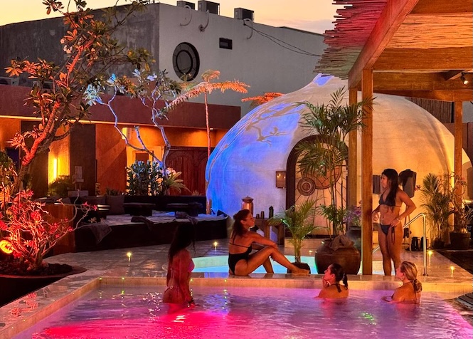 While Miles applies Burning Man lessons to radical recreation, others have drawn inspiration in more restful ways. Sasha Baybarin is the co-founder of the Steamology Institute, an international nonprofit exploring the benefits of steam healing in beautiful, intentional spaces. From humble beginnings in Black Rock City, they now have public steam practice hubs operating under the name Atmos in Portugal, Bali, and an invite-only location in Los Angeles where they teach, conduct research, and support conversations on steam healing culture. He saw Burning Man as a guide for a project that literally warms its community.