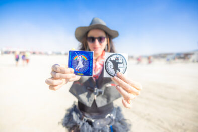 These coveted stickers are designed by YOU. That’s right — anyone and everyone is invited to submit one or more designs to be considered for the official Black Rock City 2026 stickers.
